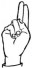 На ћирилици написано МАРИЈА БЕТЕГАЛО састоји се из 14 слова [?]. Исписано ћириличном једноручном азбуком за глувонеме: